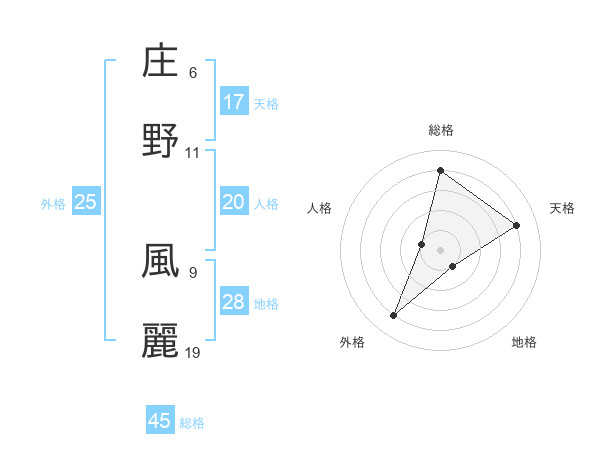 庄野 風麗さんの地格は28画の1点!