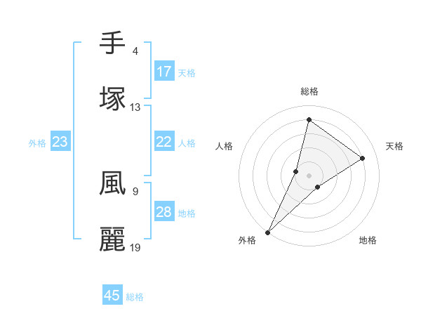手塚 風麗さんを姓名の画数から五運を鑑定