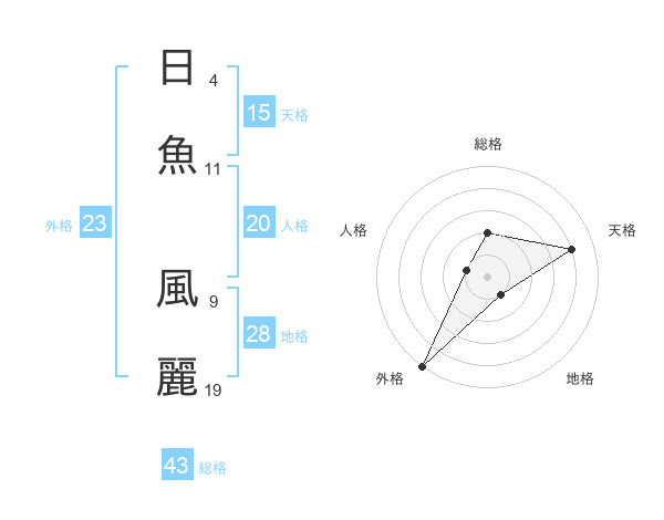 日魚 風麗さんの外格は23画の5点!