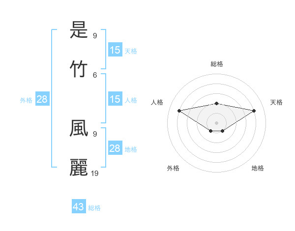 是竹 風麗さんを姓名の画数から五運を鑑定