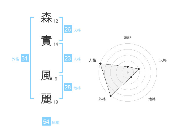 森實 風麗さんの外格は31画の5点!