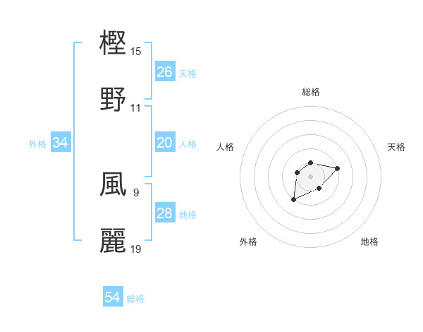 樫野 風麗さんを姓名の画数から五運を鑑定