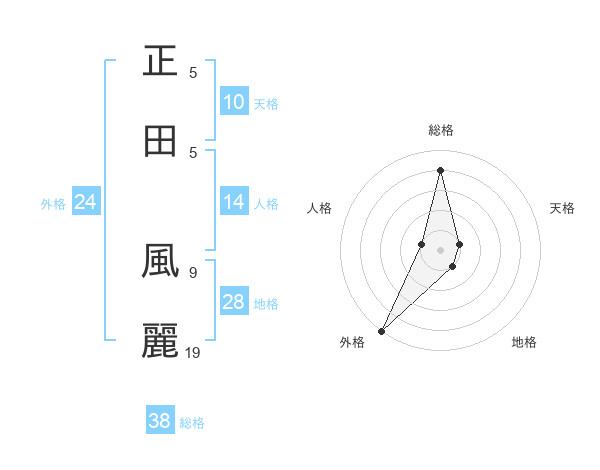 正田 風麗さんの総格は38画の4点!