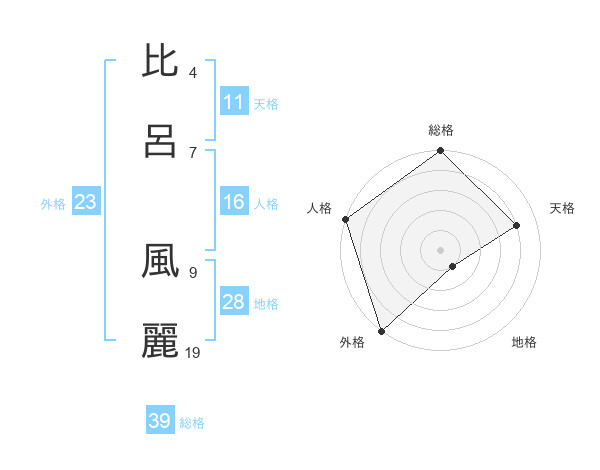 比呂 風麗さんの総格は39画の5点!