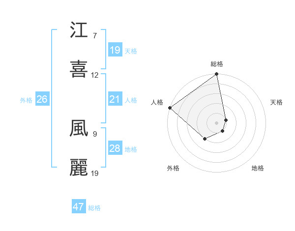 江喜 風麗さんの総格は47画の5点!