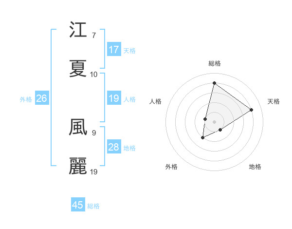 江夏 風麗さんの総格は45画の4点!