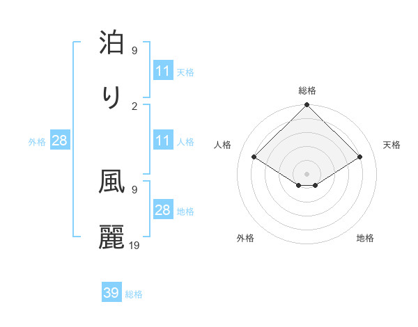 泊り 風麗さんを姓名の画数から五運を鑑定