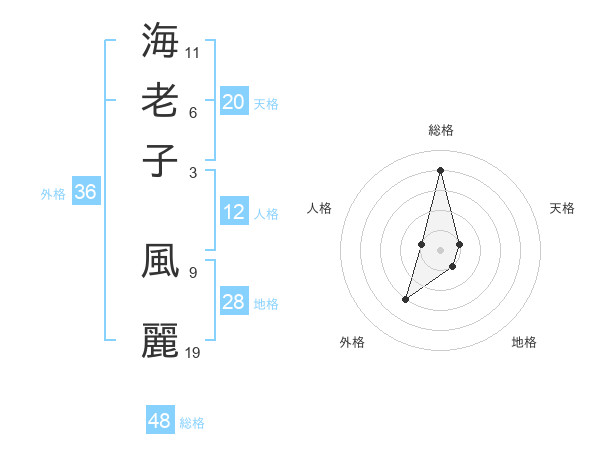 海老子 風麗さんの総格は48画の4点!