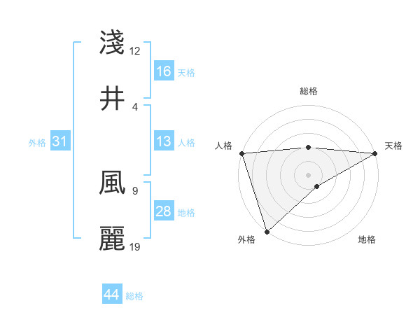 淺井 風麗さんの天格は16画の5点!