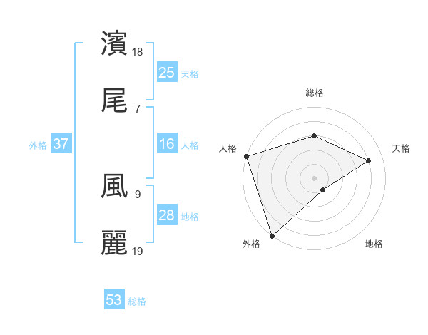 濱尾 風麗さんの総格は53画の3点!