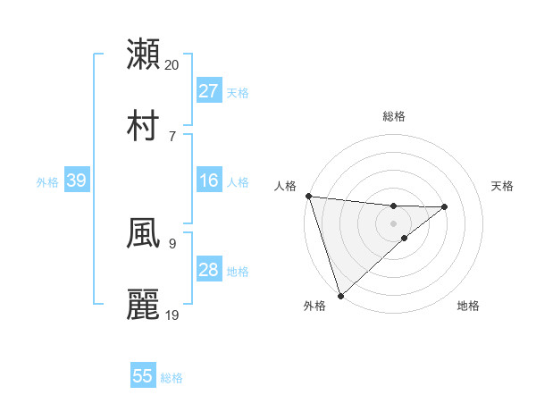 瀬村 風麗さんを姓名の画数から五運を鑑定