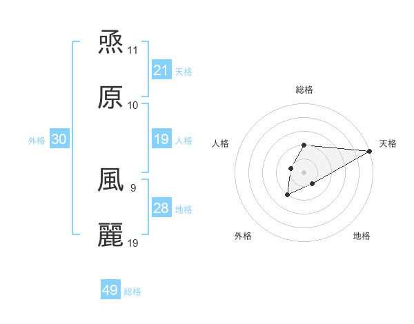 焏原 風麗さんの天格は21画の5点!