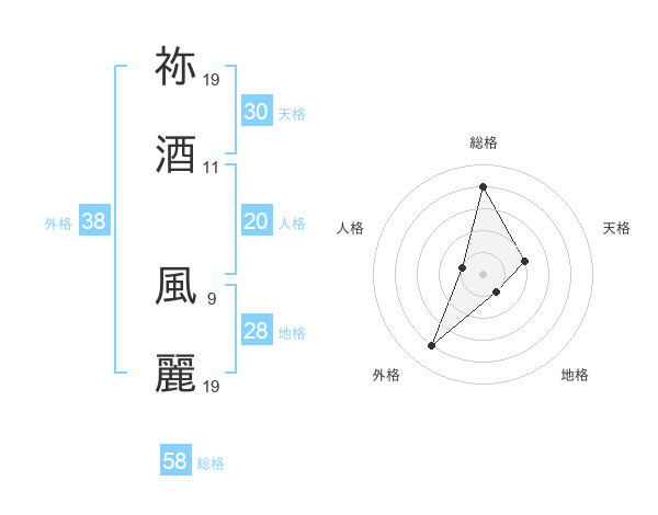 祢酒 風麗さんの外格は38画の4点!