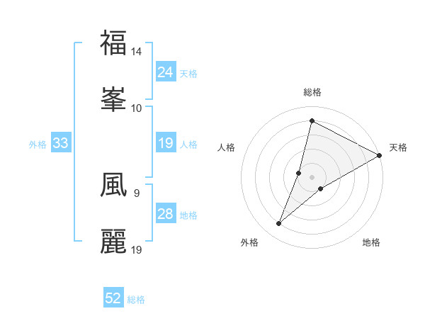 福峯 風麗さんを姓名の画数から五運を鑑定