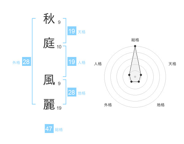 秋庭 風麗さんを姓名の画数から五運を鑑定