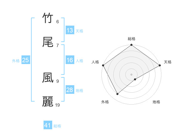 竹尾 風麗さんの総格は41画の5点!