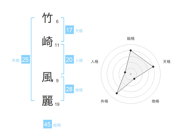 竹崎 風麗さんを姓名の画数から五運を鑑定