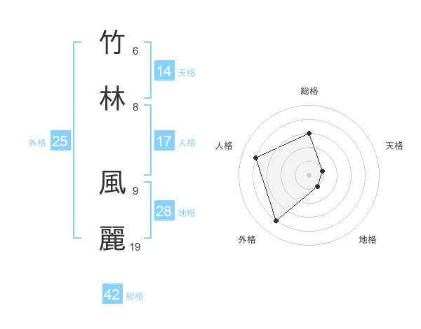 竹林 風麗さんを姓名の画数から五運を鑑定