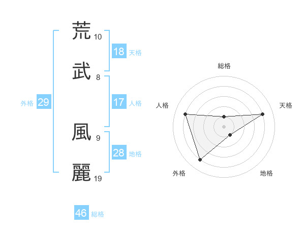 荒武 風麗さんを姓名の画数から五運を鑑定