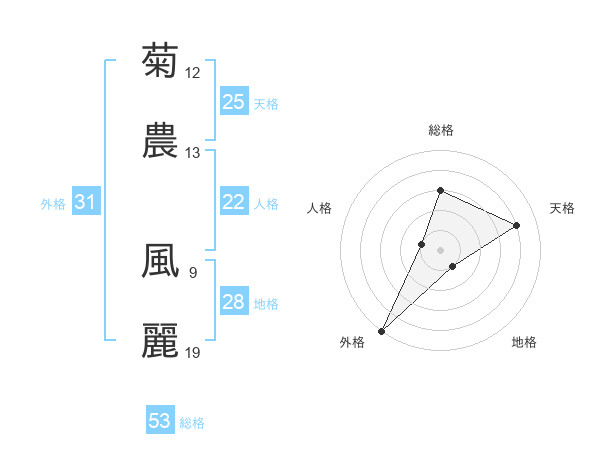 菊農 風麗さんを姓名の画数から五運を鑑定