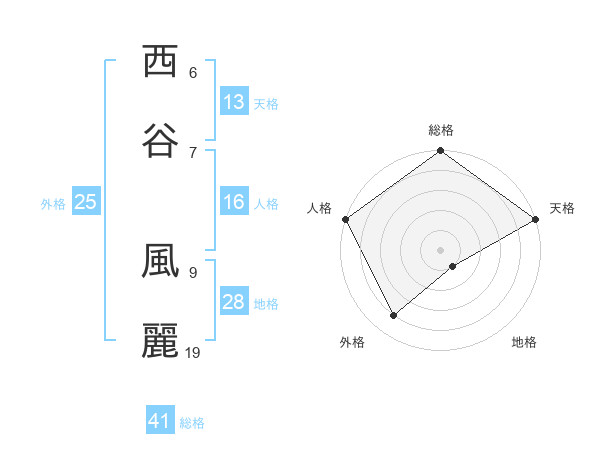 西谷 風麗さんを姓名の画数から五運を鑑定