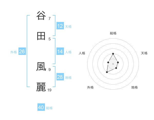 谷田 風麗さんを姓名の画数から五運を鑑定