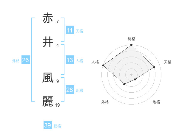 赤井 風麗さんの総格は39画の5点!