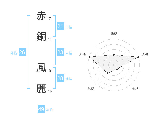 赤銅 風麗さんの総格は49画の2点!