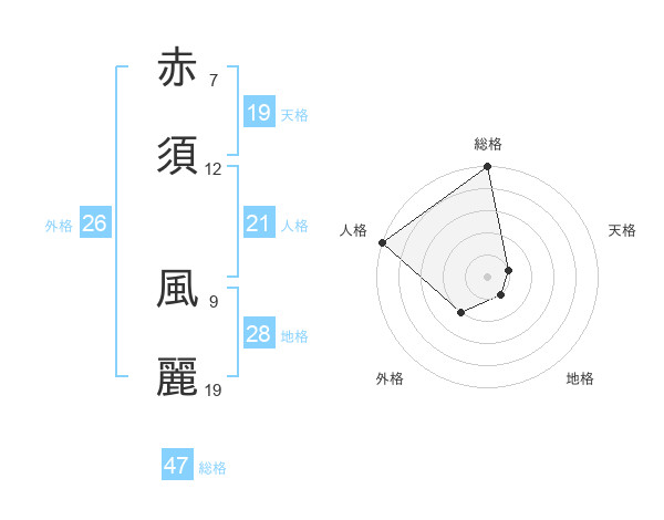 赤須 風麗さんの総格は47画の5点!