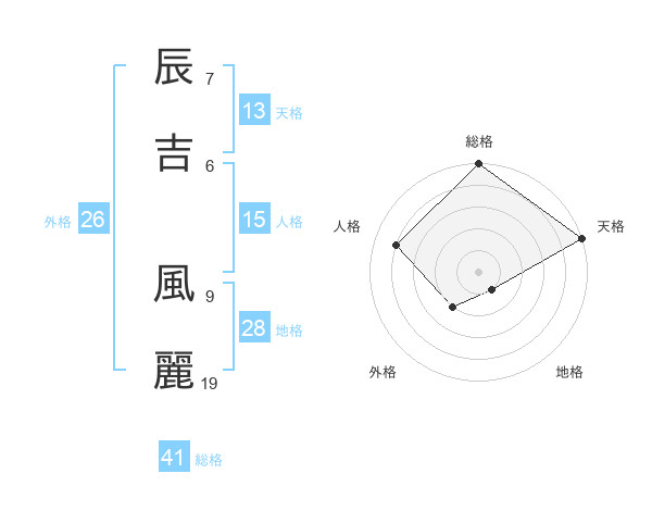 辰吉 風麗さんを姓名の画数から五運を鑑定