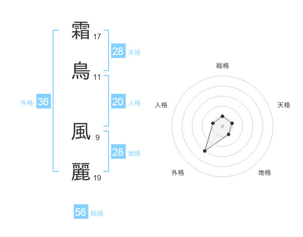 霜鳥 風麗さんの総格は56画の1点!