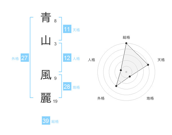 青山 風麗さんの総格は39画の5点!