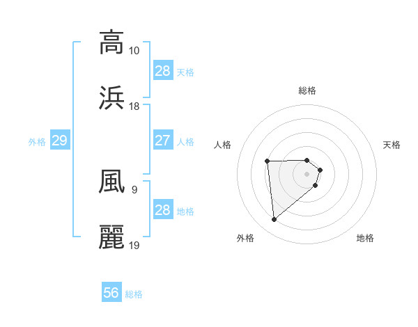 高浜 風麗さんを姓名の画数から五運を鑑定