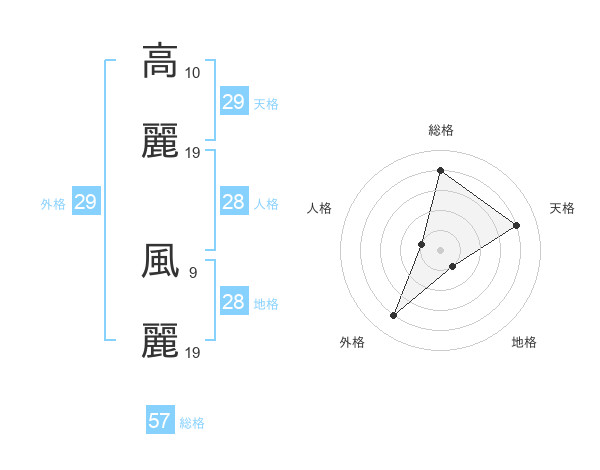 高麗 風麗さんの総格は57画の4点!