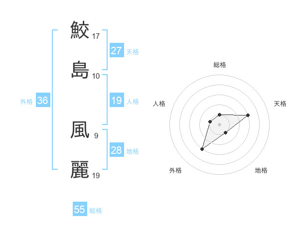 鮫島 風麗さんを姓名の画数から五運を鑑定