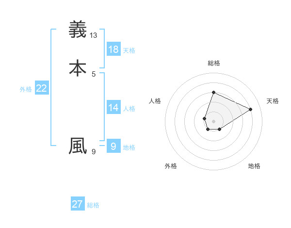 義本 風さんの総格は27画の3点!