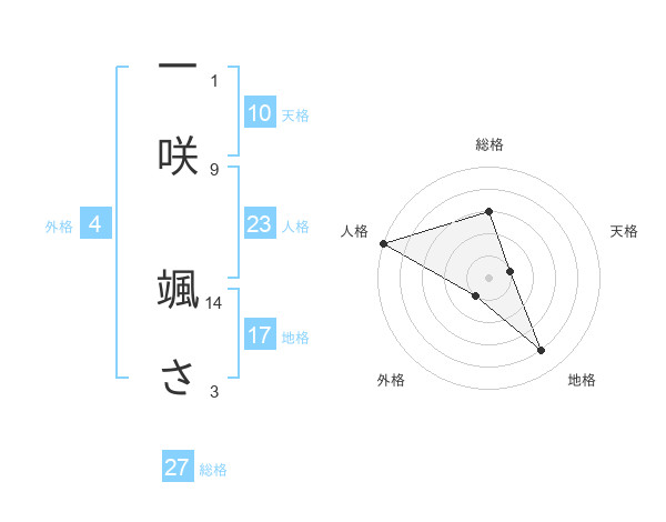 一咲 颯ささんの総格は27画の3点!