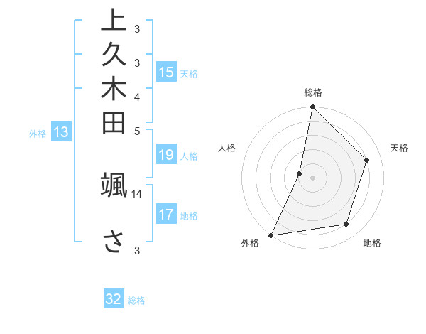 上久木田 颯ささんを姓名の画数から五運を鑑定