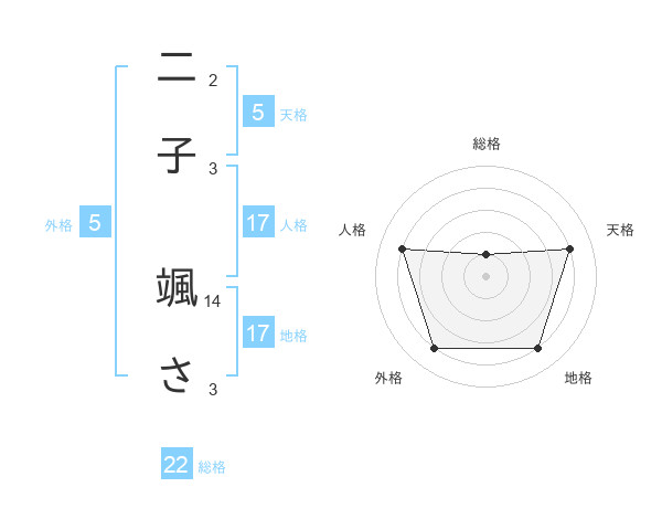 二子 颯ささんの天格は5画の4点!