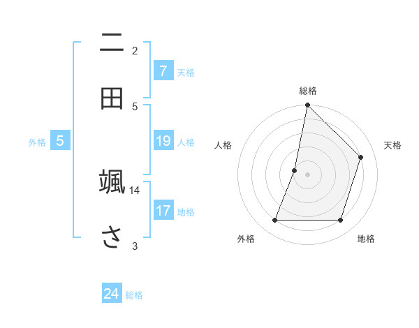 二田 颯ささんの総格は24画の5点!