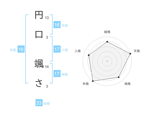 円口 颯ささんの総格は33画の4点!