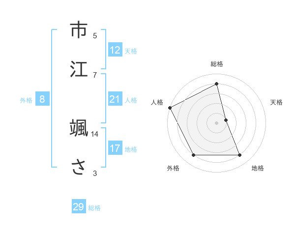 市江 颯ささんの人格は21画の5点!