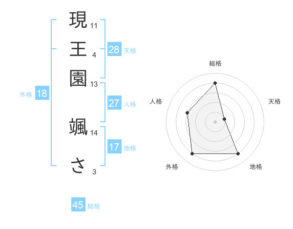 現王園 颯ささんを姓名の画数から五運を鑑定