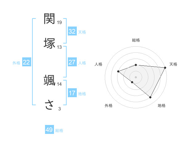 関塚 颯ささんの総格は49画の2点!