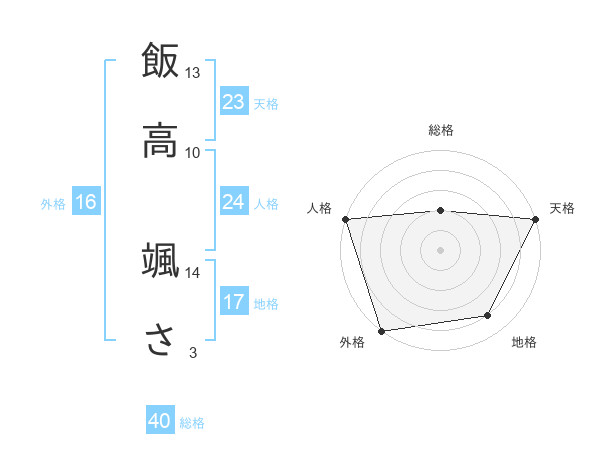 飯高 颯ささんを姓名の画数から五運を鑑定