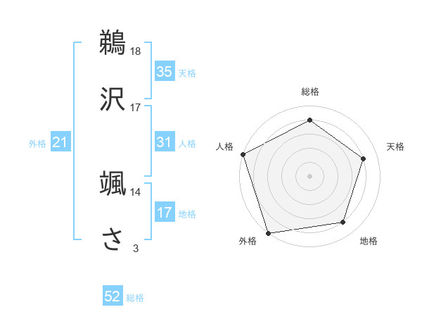 鵜沢 颯ささんの総格は52画の4点!
