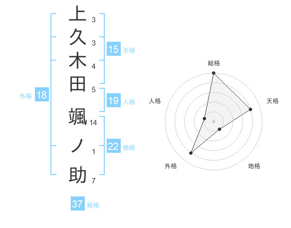 上久木田 颯ノ助さんの総格は37画の5点!