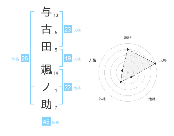 与古田 颯ノ助さんの天格は23画の5点!