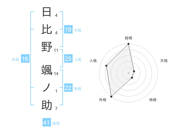 日比野 颯ノ助さんを姓名の画数から五運を鑑定