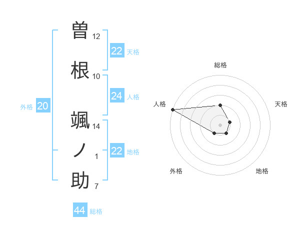 曽根 颯ノ助さんを姓名の画数から五運を鑑定